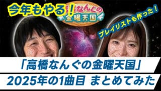番組改編【好評につき今年もやる】「高橋なんぐの金曜天国」2025年の1曲目をまとめてみた 今回は昨年に引き続き、BSNラジオで金曜朝に放送されている『高橋なんぐの金曜天国』にて、2025年に1曲目としてオンエアされた楽曲をまとめてみたものをお送りします。今年はプレイリストも作っているのでぜひ聞いてみて下さい。 2025.12.19番組改編