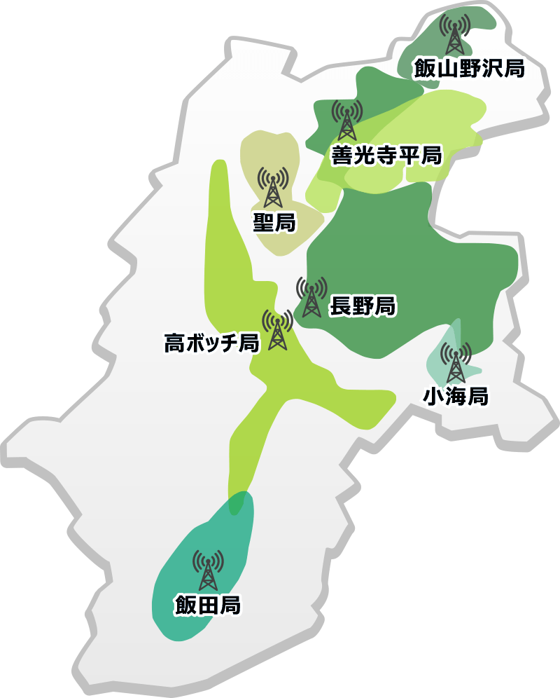新たに第2期から実証実験を実施するSBC信越放送では、上田局、佐久局、軽井沢局の3中継局を運用停止にします。長野FM補完局:92.2MHzで補完されているほか、AM親局の長野局でカバーされています。