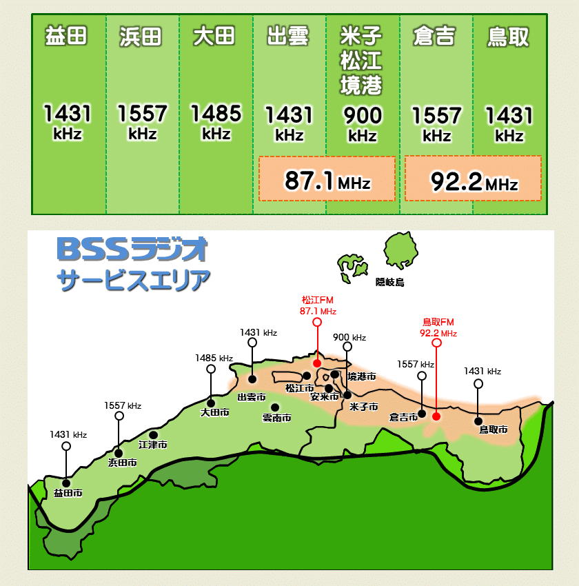 新たに第2期から実証実験を実施するBSSラジオこと山陰放送では、倉吉中継局を運用停止します。鳥取補完FM局:92.2MHzで聴くことができます。でもBSSラジオだと他エリアから聴いてる割合も高そうなのでradikoとかYoutubeあたりを活用している人が多いんでしょうね。