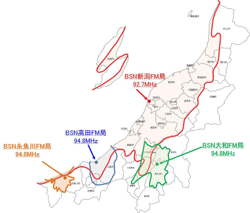 新潟放送は第1次実証実験で長岡と柏崎の2局を停止。この2つは2026年9月末まで期間が延長されています。加えて第2次実証実験で中継局の残り5つも2025年12月から随時運用を停止します。親局新潟AM局の1116kHzが運用継続されるためこちらで大部分カバーできるほか、補完FM局である新潟FM局の92.7MHz、高田FM局・大和FM局・糸魚川FM局の94.8MHzで聴くことができます。