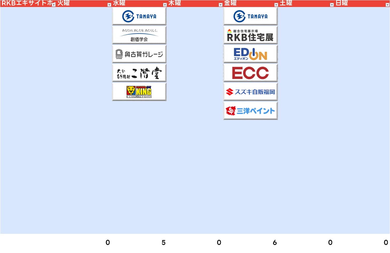 そしてRKBラジオはなんと、火曜と木曜もノンスポンサーになってしまいました。その分を水曜に集約させたというのもあるかもしれないですが、全体としては去年が1日平均3.5社だったのが今年はさらに減って2.75社。独占中継できる土日に競馬中継で中断する理由もわからなくはないのかもしれません。
